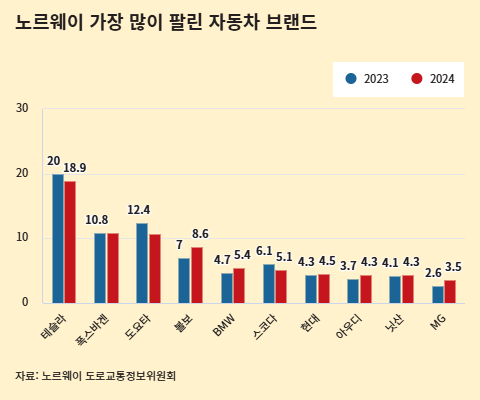 노르웨이는 여전히 돈 많이 드는 전기차 우대 정책을 꿋꿋이 유지 중입니다. 물론 2023년부터 전기차 값 중 50만 크로네(6400만원)가 넘는 부분에 대해서는 부가가치세를 내도록 하는 등 혜택을 다소 줄이긴 했는데요. 잘 팔리는 차종은 대부분 50만 크로네 이하이기 때문에 여전히 대다수 소비자엔 매력적인 정책이 아닐 수 없습니다.