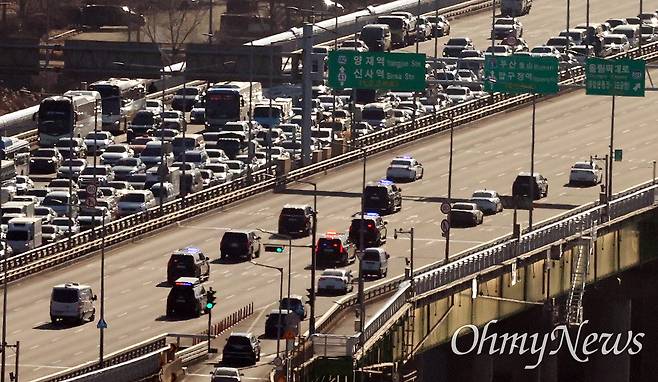 | ▲ 15일 오전 서울 용산구 한남동 대통령 관저에서 '내란 우두머리' 혐의를 받고 있는 윤석열 대통령이 공수처에 긴급체포되어 과천 공수처 청사로 이송되고 있다. |