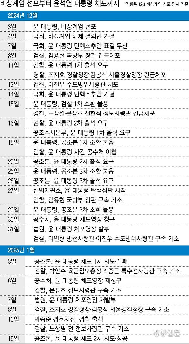 윤석열 내란죄 수사 40일 일지…버티고 버티다 ‘체포 망신’ 자초