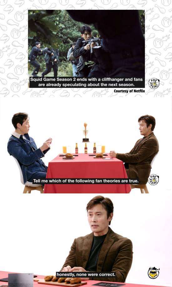 이정재는 이병헌에게 "'오징어 게임2'가 결말 아닌 결말(클리프헹어)로 끝이 났는데, 이에 많은 팬들이 시즌3에 대한 추측들을 하고 있다. 팬들의 추측 중 옳은 것을 알려달라"고 질문했다.