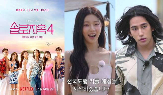 지난 14일 1회부터 4회까지 공개된 넷플릭스 예능 '솔로지옥4'는 커플이 되어야만 나갈 수 있는 외딴 섬, '지옥도'에서 펼쳐질 솔로들의 솔직하고 화끈한 데이팅 리얼리티쇼로 지난해 1월 시즌3가 종료된지 1년 만에 돌아왔다.