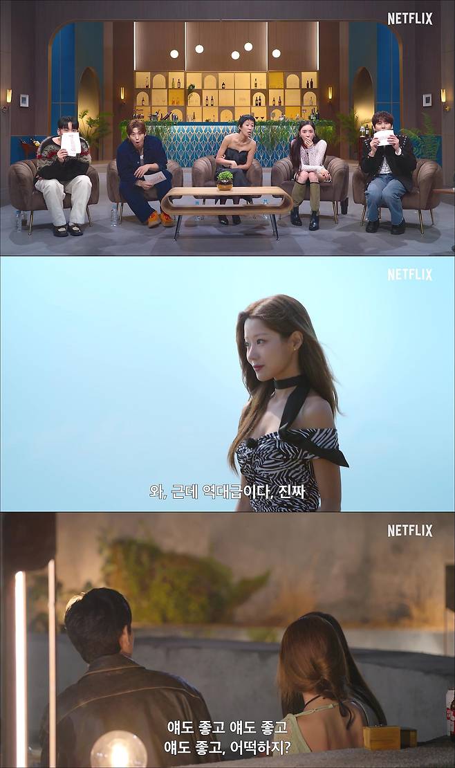 여성 출연자들이 있는 방에 '메기남'이 등장한 것. 그런데 연속으로 들어오는 남성 출연자들은 여성 출연자들을 당황하게 만들었고, 심지어 세 명의 남자 중 선택받은 한 명만 참가할 수 있다는 룰이 공개돼 충격을 더했다.