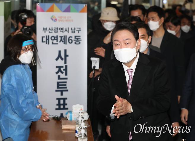 | ▲ 윤석열 대통령이 지난 2022년 3월 4일 대선 당시 부산 남구 대연동 부산남구청에 마련된 사전투표소에 들어서고 있다. |