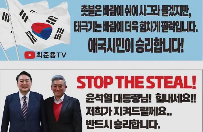 윤 대통령과 찍은 사진도 공개했다. "윤석열 대통령님! 힘내세요! 저희가 지켜드릴게요. 반드시 승리합니다"라고 적었다. 집회 참가자들을 향해 "촛불은 바람에 쉬이 사그라들겠지만, 태극기는 바람에 더욱 힘차게 펄럭입니다. 애국시민이 승리합니다. 추운데 고생 많으십니다. 승리하는 그날까지 조금 더 힘냅시다!"라고 강조했다.