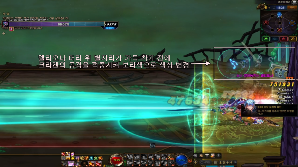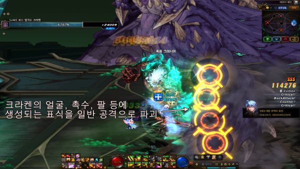 ※ 크라켄의 공격이 적중되도록 워닝 사인 타이밍에 홀딩 스킬 사용