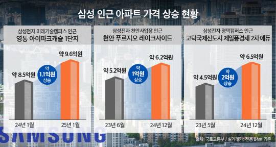 이 밖에 삼성전자 평택캠퍼스와 인접한 '고덕국제신도시 제일풍경채 2차에듀' 전용 84㎡는 지난해 12월 약 6.5억원에 거래돼 2023년 5월 거래가(약 4.5억원) 대비 약 2억원의 가격 상승을 보이기도 했다.