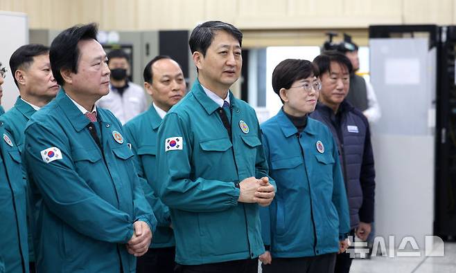 [성남=뉴시스] 김선웅 기자 = 안덕근 산업통상자원부 장관이 16일 경기 성남시 남동발전 분당발전본부를 방문해 겨울철 전력수급 현황을 점검하고 있다. 2025.01.16. mangusta@newsis.com