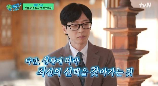 15일 방송된 tvN <유 퀴즈 온 더 블럭>에서는 '즉문즉설의 대가' 법륜 스님이 출연해 2025년 우리 사회의 다양한 고민을 듣고 삶의 나침반이 되어줄 조언을 전했다.