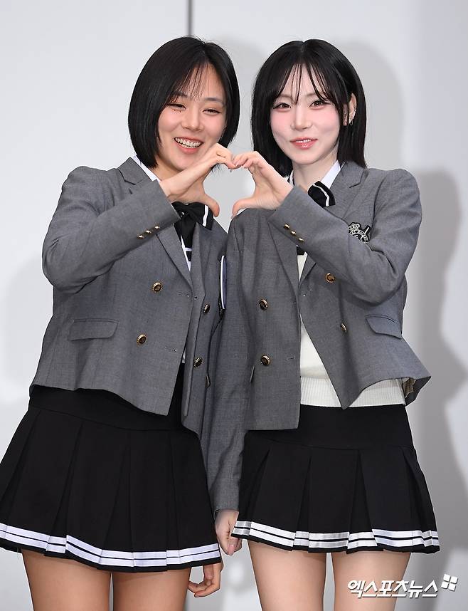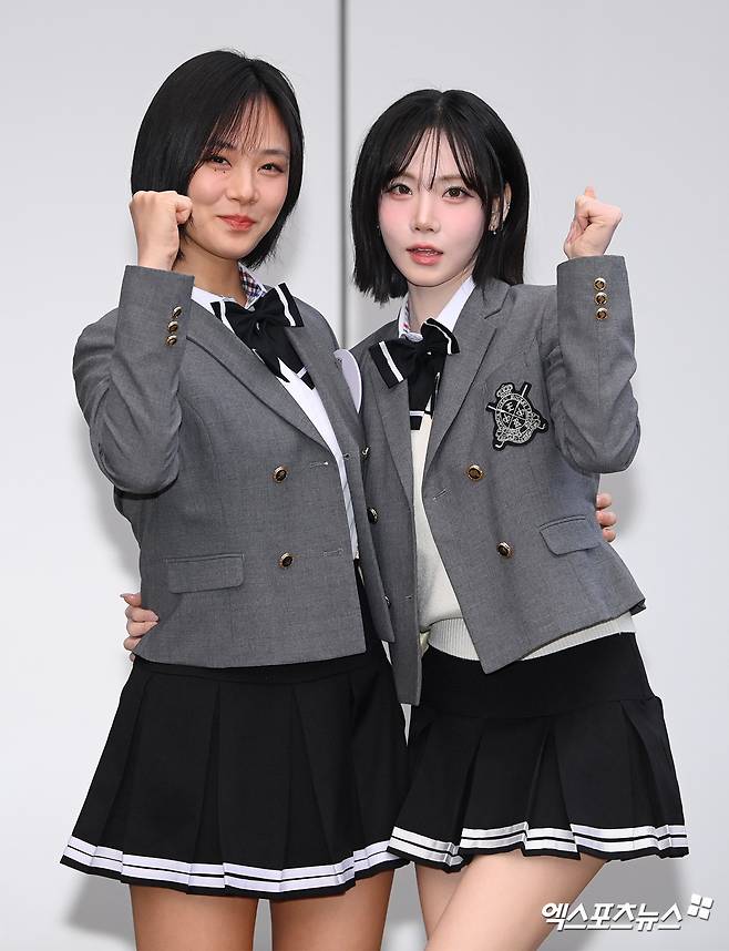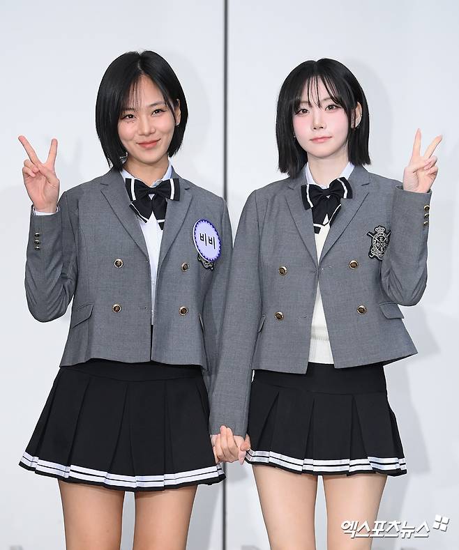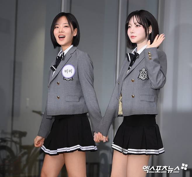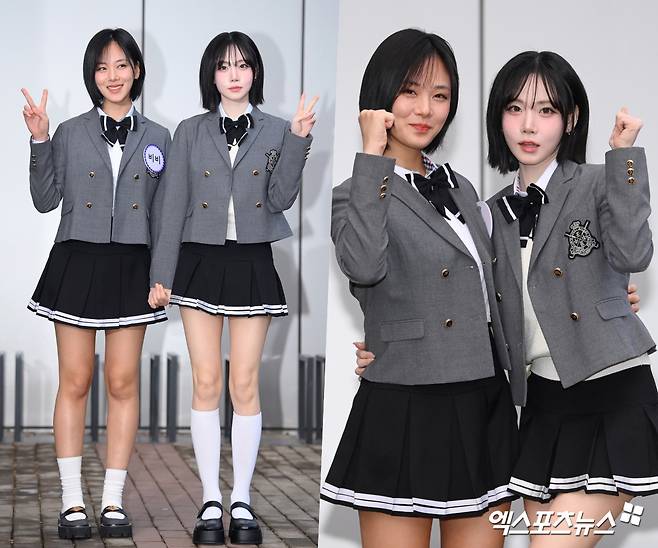 이날 '아는 형님' 녹화에 참석한 가수 비비(김형서), 트리플에스 김나경 자매가 포토타임을 갖고 있다.