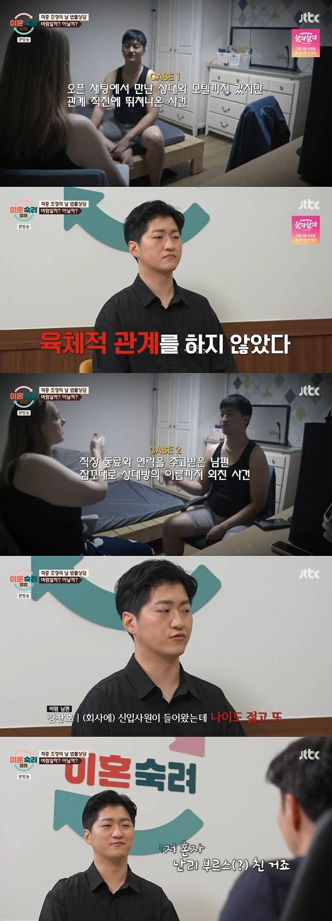 이에 대해 남편은 "신입 사원이 들어왔는데 나이도 젊고 와이프는 집에서 바가지만 긁는다. 호감을 느낀 상태고 아내를 일부러 화나게 하려고 '왜 너랑 결혼했냐' 이런 말들을 했다"고 인정했다.