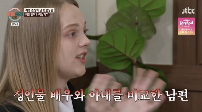 뿐만 아니라 아내는 "남편이 야동을 자주 본다. 부부 관계를 하기 싫었다"면서 "남편이 성인물 배우와 비교를 많이 했다. '우리 부부관계하면 영상 속 여자만 보고 싶다. 너 보기 싫다'고 했다"고 말해 변호사를 놀라게 했다.