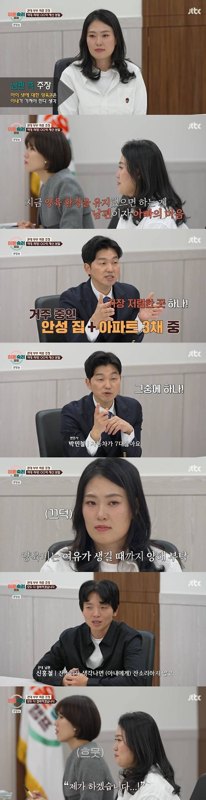 남편이 원해 시작된 최종 조정에 아내 측은 "남편이 이혼하게 되면 전재산 다 준다고 했었다"며 전재산을 줄 것을 요구했다.