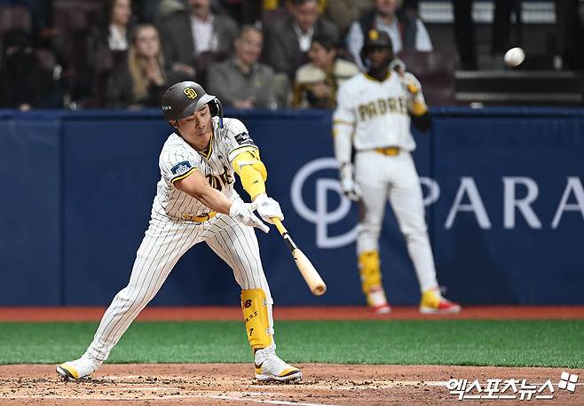 2021년 메이저리그 무대에 진출한 김하성은 2024년까지 4시즌 통산 성적 540경기 출전, 타율 0.242, 418안타, 47홈런, 200타점, 78도루, OPS(출루율+장타율) 0.706을 기록했다. 김하성은 2024시즌 121경기 출전, 타율 0.233, 94안타, 11홈런, 47타점, 22도루, OPS 0.700으로 시즌을 마무리했다.