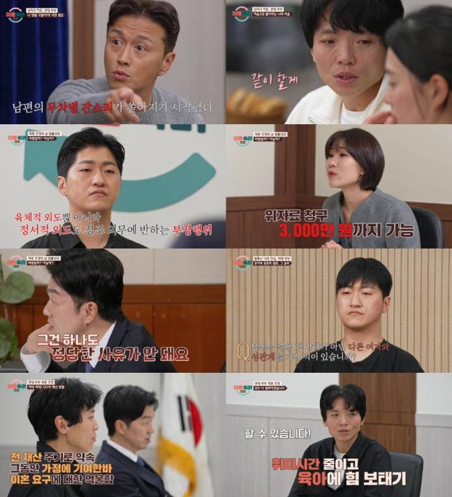 이날 다른 여성에게 호감을 느꼈던 남편으로 인해 갈등을 겪은 '바람 부부'는 남편이 저지른 세 번의 외도 의심 사건이 법적인 부정행위로 인정되는지 알아봤다. 앞서 남편은 아내의 외도 의심에 '나는 청렴결백하다, 거의 할 뻔했지만 안 했다, 거의 벌거벗은 상태였지만 미안하다고 하고 나왔다'라고 답한 바 있다.