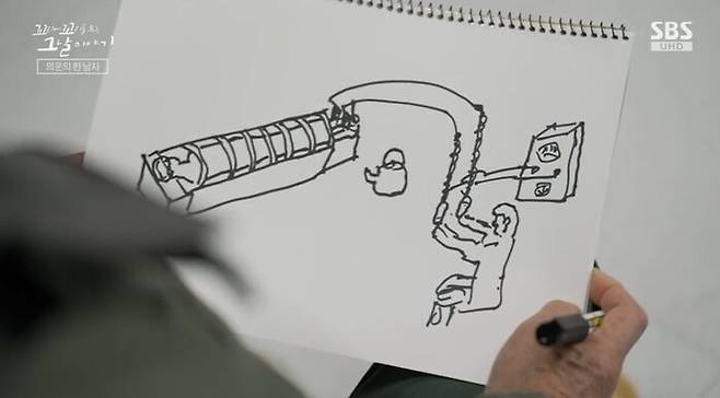 "이거는 군인들 1인용 침대 같은 거예요. 주전자를 그리는 이유는, 거기다가 물을 부어요. 그때 제가 '아, 이거 전기 고문을 하는구나' 알겠더라고."