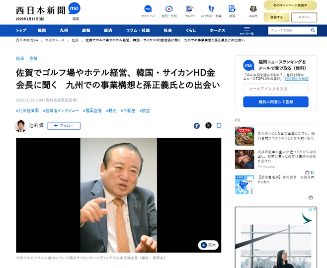 일본 <서일본신문> 보도에 따르면, 싸이칸홀딩스의 일본 내 골프장 운영 및 지역 경제에 미치는 긍정적 영향을 조명하며, 규슈 골프 관광산업의 전망과 한국 기업들의 추가적인 투자가 이어질 가능성에 대해 높게 기대하는 분위기다. 서일본신문>