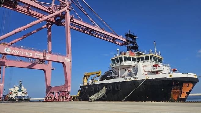 영일만항, 동해심해가스전 개발 탐사시추 보급선 하역작업 진행
