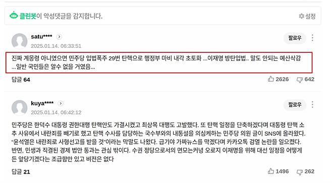 특히 위헌적 비상계엄의 선포를 정당화하고 '계엄은 계몽'이라고 주장하는 댓글들도 이들의 작업에 따라 상단에 노출됐는데, 업무방해는 물론 경우에 따라 내란선전죄까지 적용될 수 있는 것들이다.