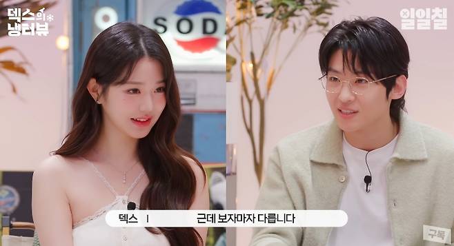 이날 2002년생 장원영은 1995년생 덱스와 말을 놓는 콘셉트로 대화를 이어갔다.