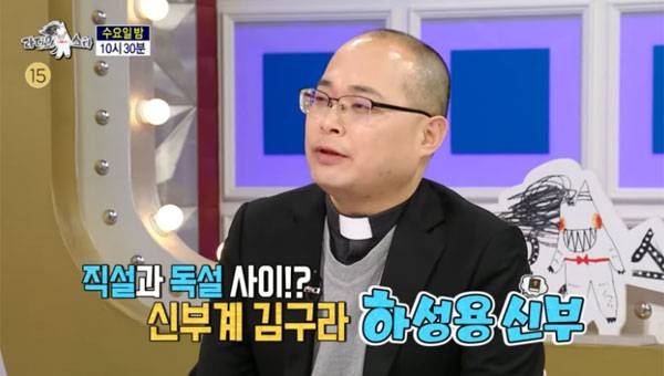 지난 8일 MBC 예능 <라디오스타> 에 출연한 하성용 가톨릭 사제가 김구라의 오랜 팬이라며 사인 받을 종이까지 마련해왔다. 라디오스타>