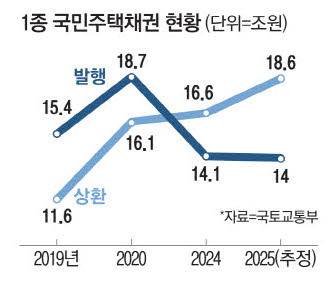 문제는 2023년부터 부동산 시장이 침체기에 접어들면서 국민주택채권 발행액이 13조3000억원으로 줄었다는 점이다. 올해도 대출 규제와 탄핵 정국 여파로 부동산 거래가 얼어붙으며 발행액이 14조원에 불과할 것으로 추정된다.
