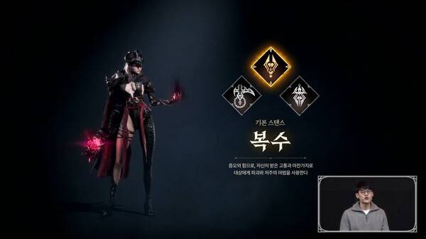 복수는 로드를 무기로 활용해 사거리가 긴 스킬로 적에게 피해를 주는 원거리 광역 딜러다. PvP 대치 상황에서 강력한 원거리 공격과 함께 상태 이상 연계 플레이에 특화되어 있다.