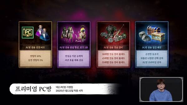 1월 22일 이후 프라시아 전기 프리미엄 PC방 혜택이 적용된다. 혜택은 PC방 전용 성장 버프(경험치 10%, 심연 경험치 5%), PC방 전용 전설 형상 및 탈것 2종(전설 등급 기본 능력치), PC방 전용 영웅 장비(30, 45, 55레벨 풀세트), PC방 전용 일간 제전(온전한 동조석, 뒤틀린 나침반 선택 상자, PC방 프리미엄 상자)로 구성됐다.