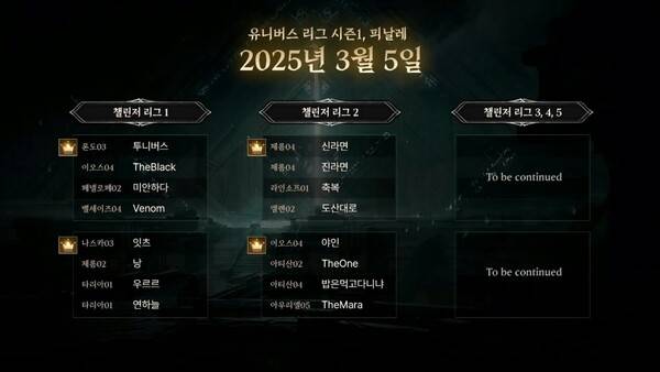 2025년 3월 5일에 펼쳐질 예정이다. 유니버스 리그 시즌2에서는 랭킹 보상이 추가되고 시즌&라운드 기간도 축소된다. 거점전 또한 전술 스크롤, 진행 비용이 조정되는 동시에 매칭 기준도 전투력을 참조하는 방식으로 변경되어 보다 자주 즐길 수 있을 것이다.