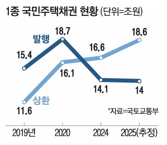 문제는 2023년부터 부동산 시장이 침체기에 접어들면서 국민주택채권 발행액이 13조3000억원으로 줄었다는 점이다. 올해도 대출 규제와 탄핵 정국 여파로 부동산 거래가 얼어붙으며 발행액이 14조원에 불과할 것으로 추정된다.