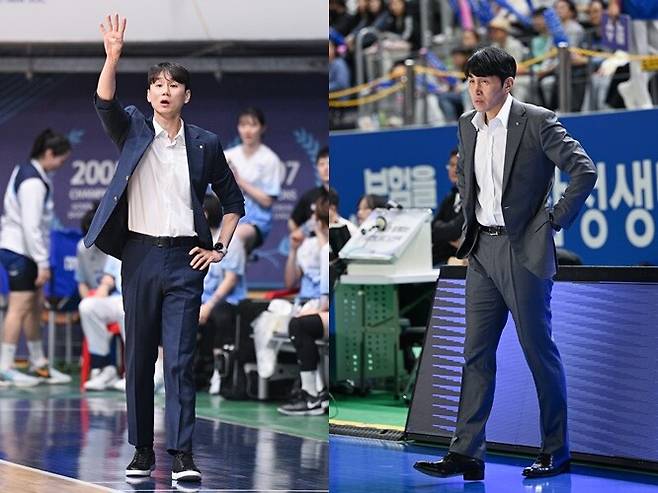 사진 설명 = 왼쪽부터 이시준 신한은행 감독대행-위성우 우리은행 감독