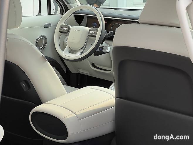 신형 팰리세이드 9인승 모델 탑승구조는 카니발과 다르다. 전체 3열에 앞좌석에 3명이 타고 2열과 3열에 3명씩 탈 수 있는 ‘3+3+3’ 구조다. 2열 좌석이 독립적인 캡틴시트 2개로 이뤄진 7인승과 달리 일반적인 5인승 승용차처럼 벤치형시트로 구성됐다. 일반적인 3~5인 가족이라면 평상시 3열 좌석을 접어 트렁크를 넓게 사용하고 5인승 승용차처럼 활용하기 적합하다. 최신 대형 SUV 모델답게 시트 조작을 위한 다양한 편의사양도 갖춰졌다. 3인 탑승이 가능한 앞좌석은 아이디어가 참신하지만 활용도는 높지 않아 보인다. 성인 남성 3명이 탄 모습이 꽤 불편해 보였다. 가운데 좌석에는 별도로 3점식 안전벨트가 있고 3인 탑승을 고려해 조수석쪽 신규 에어백까지 추가했다. 운전석에서 고리를 잡아당겨 센터콘솔을 접거나 세우는 방식으로 가운데 공간을 좌석으로 사용할 수 있다. 최근 반려동물 인구가 많은데 강아지나 고양이를 태울 수 있는 전용 쿠션이 있으면 이 공간을 더욱 유용하게 사용할 수 있을 것으로 보인다.