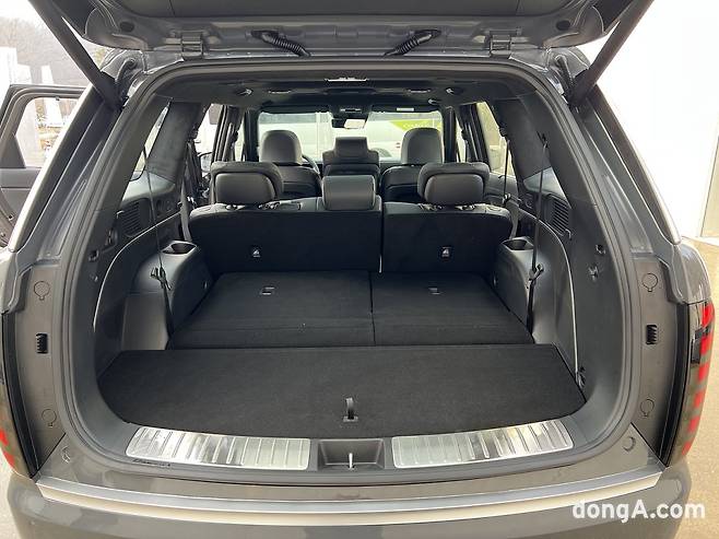 시트는 전동식으로 접거나 펼 수 있다. 트렁크에는 2열과 3열의 모든 시트를 조작할 수 있는 버튼이 배치됐다. 특히 버튼을 한 번만 눌러 2열과 3열 좌석을 접거나 펼 수 있는 기능도 있다. 매우 편리한 기능이다. 3열 좌석 착좌감은 카니발(4열)이나 EV9보다 쾌적하다. 심지어 3열 시트 등받이 각도를 조금 눕힐 수 있는 리클라이닝 기능까지 있다. 카니발 9인승의 경우 앞좌석에 2명, 2열과 3열에 각각 2명, 4열 3명 등 ‘2+2+2+3’ 구조로 이뤄졌다. 4열은 거의 형식적인 좌석으로 보면 되기 때문에 6~7인 탑승이 가장 적합하다. 카니발 7인승 3열과 9인승 4열(맨 끝 좌석) 시트는 리클라이닝 기능이 없다.