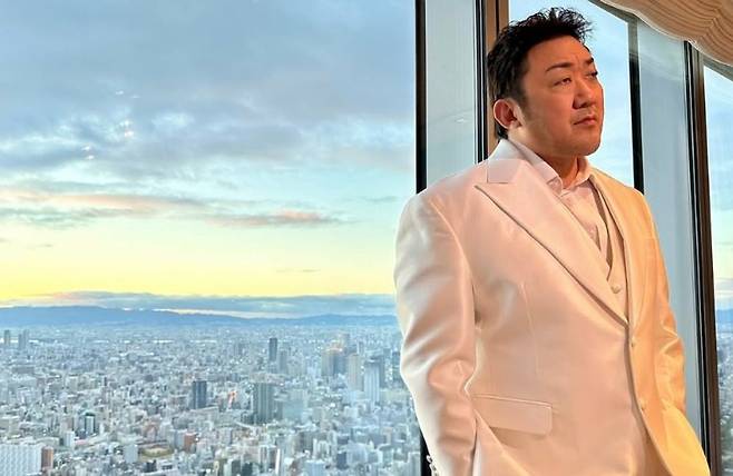 공개된 사진엔 화이트 수트를 차려입고 카메라 앞에 선 마동석의 모습이 담겼다.