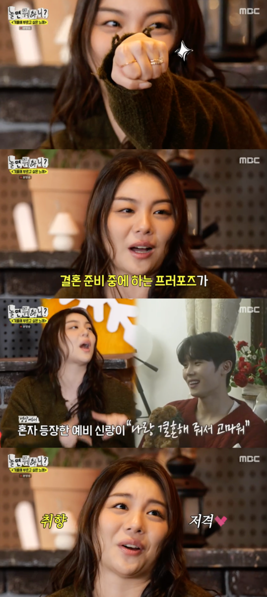 오는 4월 결혼을 앞둔 에일리는 18일 전파를 탄 MBC '놀면 뭐하니?'에 나와 프러포즈에 대한 질문에 "결혼 준비 다 하고 있는데 프러포즈 받는 게 이질적이라 싫다고 했는데 남자 친구가 답사 다녀오고 다 준비했더라. 그래도 다 취소하고 소소하게 진행했다"고 말했다.