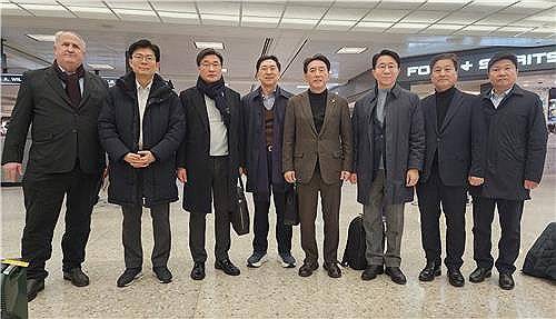 (워싱턴=연합뉴스) 박성민 특파원 = 김석기 국회 외교통일위원장(오른쪽) 등 한국 의원들이 도널드 트럼프 미국 대통령 당선인의 오는 20일(현지시간) 취임식에 참석하기 위해 18일 워싱턴DC 인근 덜레스 국제공항을 통해 미국에 도착했다. 2025.1.19