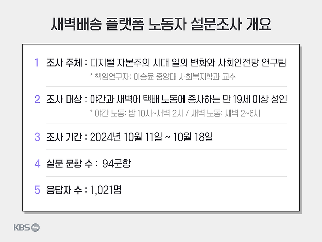 모두 1,021명의 새벽 배송 종사자들이 94개 문항으로 구성된 설문조사에 답변했는데요.