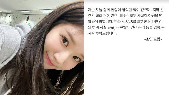 그런 가운데, 온라인을 중심으로 박소영 아나운서가 윤석열 대통령 구속영장 발부 관련 집회 현장에 등장했다는 내용의 글이 확산됐고, 이에 대해 박소영 아나운서가 직접 해명을 한 것으로 보인다.
