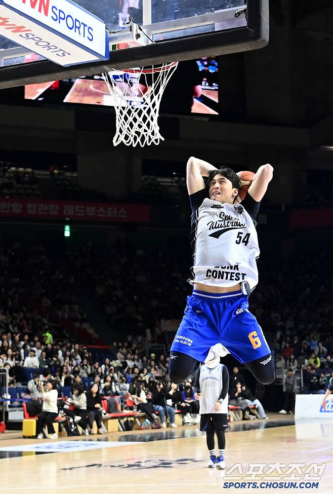 19일 부산사직체육관에서 열린 프로농구 올스타전, 서울 삼성 조준희가 덩크콘테스트에서 덩크를 시도하고 있다. 부산=허상욱 기자 wook@sportschosun.com/2025.01.19/