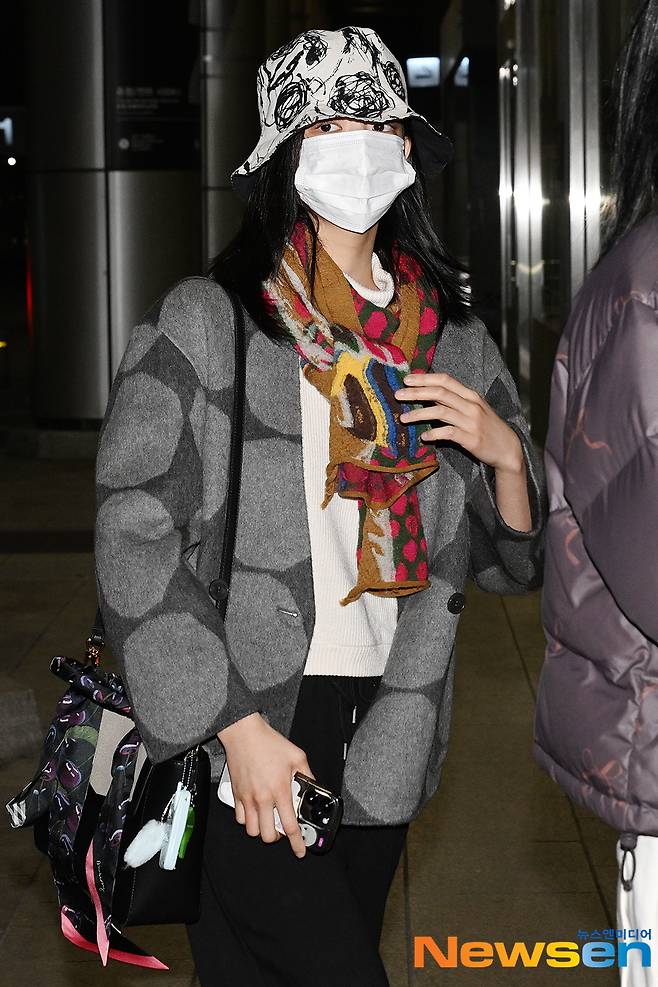 있지(ITZY) 멤버 예지, 리아, 류진, 채령, 유나가 1월 19일 오전 서울 강서구 방화동 김포국제공항 국제선을 통해 해외 일정 참석차 일본으로 출국하고 있다.