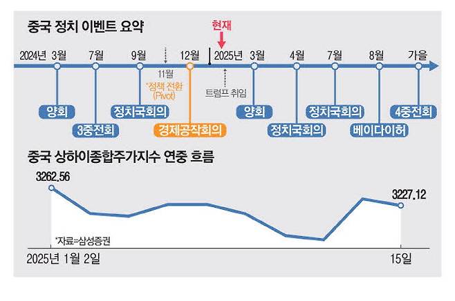 시진핑 중국 국가주석의 3기 지도부는 경기 침체 장기화와 트럼프 2.0 시대 미·중 갈등이라는 구조적인 위험에 대응해 단기 경기 회복과 중장기 산업 고도화의 정책 목표를 성취해야 한다. 올해 3월 양회에서 경기 부양의 윤곽이 드러날 것으로 예상한다.