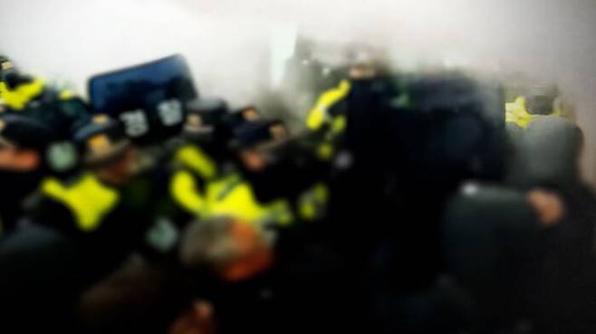 [경찰 : 위험한 행동을 하지 말아 주십시오. 물건 던지지 마세요.]