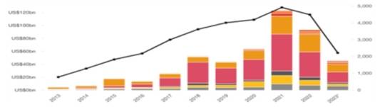 <그림 1> 미국 기후테크 스타트업 투자액 및 투자 건수