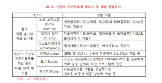 제약사와 바이오테크 기업은 이런 문제에 대응하기 위해 신약 개발과 다양한 치료제를 내놓고 있는 가운데 최근에는 GLP-1 수용체 작용제(GLP-1 receptor agonists) 기반의 비만 치료제가 높은 효과를 보이면서 시장에서 큰 주목을 받고 있다. 이런 치료제는 체중 감량과 혈당 조절에 있어 강력한 효과와 더불어 지방간, 치매, 심혈관 질환에도 효과가 있는 것으로 연구 결과가 나오고 있어 ‘만능약’에 대한 기대감도 커지는 분위기다.
