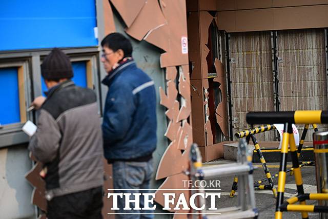 폭동 사태가 하루 지났지만 상흔은 여전히 눈에 띄고 있다. 부서진 창문은 가림막으로 급히 보수했지만 깨진 벽과 처참히 부서진 출입문, 뿌리째 뽑힌 입간판 등은 처참한 모습이다.