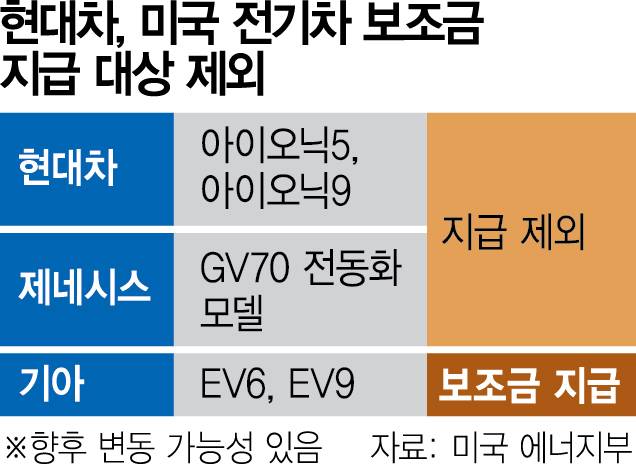 [단독] 현대차 '전기차 3개 모델' 美 보조금 제외···기아 2개만 포함