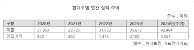 21일 금융정보업체 에프엔가이드의 컨센서스(실적 추정치)에 따르면 현대로템은 2024년 연간 매출 4조2484억원, 영업이익 4551억원을 거둘 것으로 추정된다. 컨센서스가 실현되면 작년보다 매출과 영업이익은 각각 18.43%, 116.66% 증가한다. 폴란드향 K2 전차 인도 물량이 매출로 인식된 결과다.