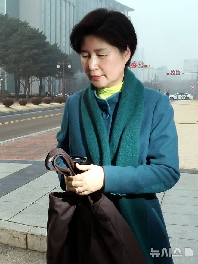 [서울=뉴시스] 조성봉 기자= 국조특위 위원인 백혜련 더불어민주당 의원이 21일 오전 서울 여의도 국회 국기게양대 앞에서 국조특위 합동참모본부 등 현장조사를 위해 버스에 탑승하고 있다. 이날 윤석열 정부의 비상계엄 선포를 통한 내란 혐의 진상규명 국정조사특별위원회 위원들은 합동참모본부 지휘통제실과 수도방위사령부 문서고 방문 조사를 진행할 예정이다. 2025.01.21. suncho21@newsis.com