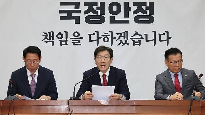 권 원내대표는 헌재를 향해선 한덕수 대통령 권한대행 국무총리, 박성재 법무부 장관, 조지호 경찰청장, 이진숙 방송통신위원장 등에 대한 탄핵 심판은 속도를 내지 않고 윤 대통령 탄핵 심판만 신속하게 진행하고 있다며 "대통령뿐만 아니라 10건의 탄핵 소추를 동시에 진행하라"고 촉구했습니다.