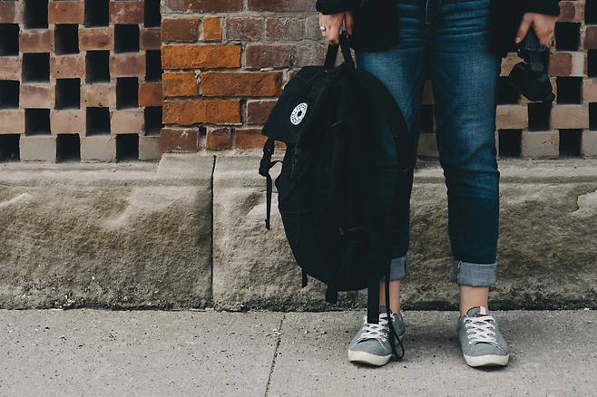 | ▲ 한 청년이 가방을 들고 서 있다. |