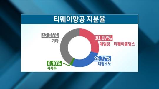 현재 티웨이항공의 최대 주주는 예림당·티웨이홀딩스입니다. 지분율은 30.07%고요.